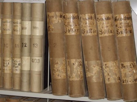 Fotos - Blick auf einen Arbeitsplatz, Grundakten, Grundbücher, ...