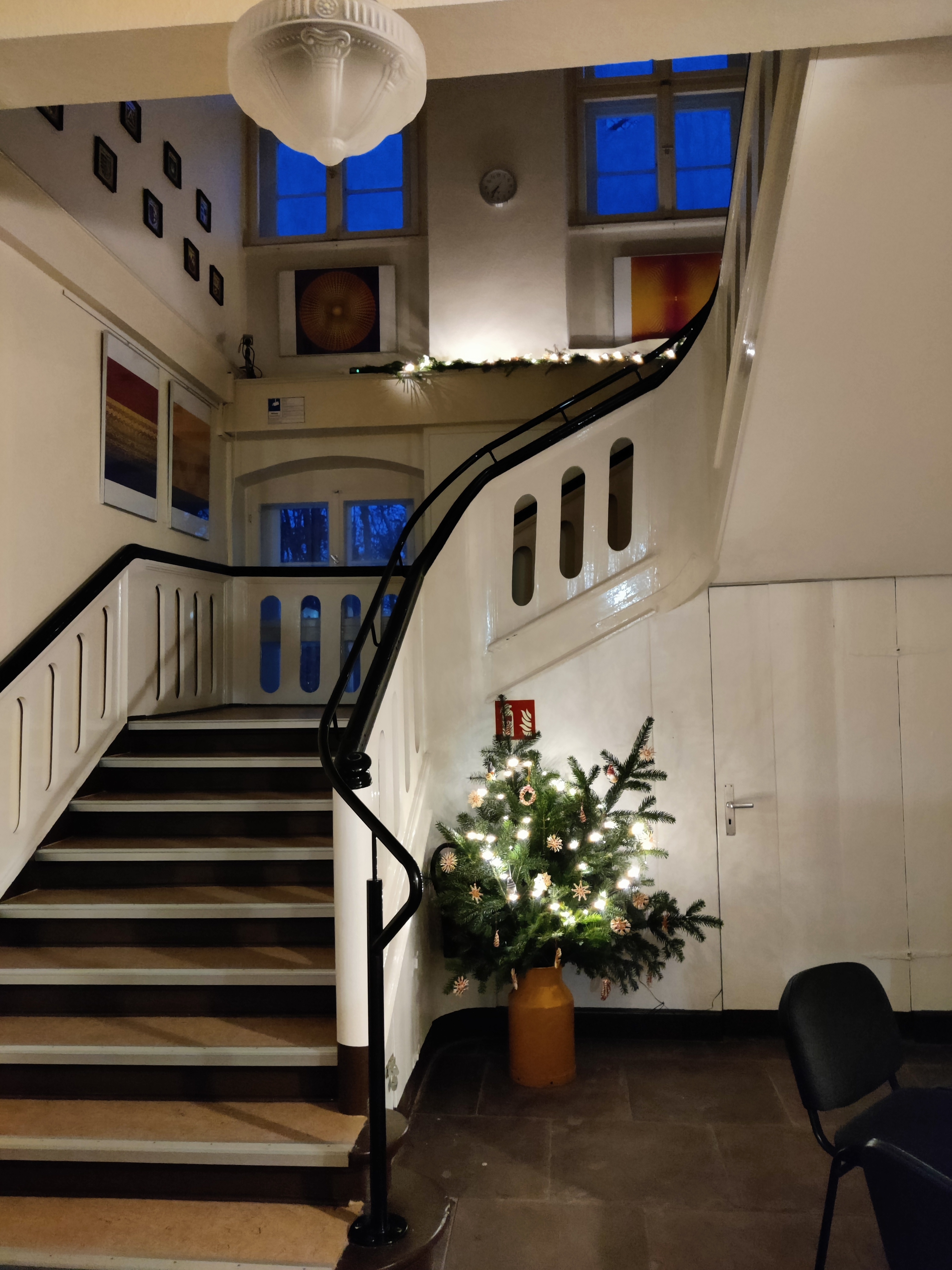 Treppenaufgang im historischen Altbau zur Weihnachtszeit
